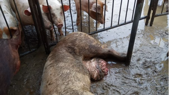 Schwein in der Bio-Haltung mit offenem, extrem schmerzhaftem Nabelabszess. / © PETA Deutschland e.V.